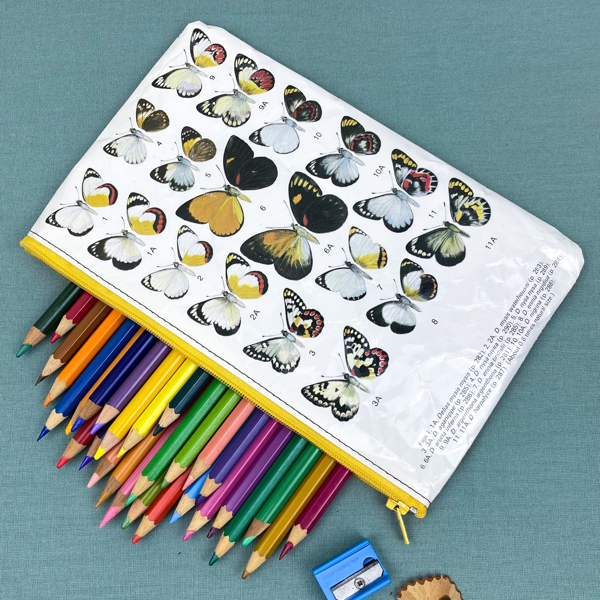 Butterfly Entomology Book Page Pencil Case, Yellow