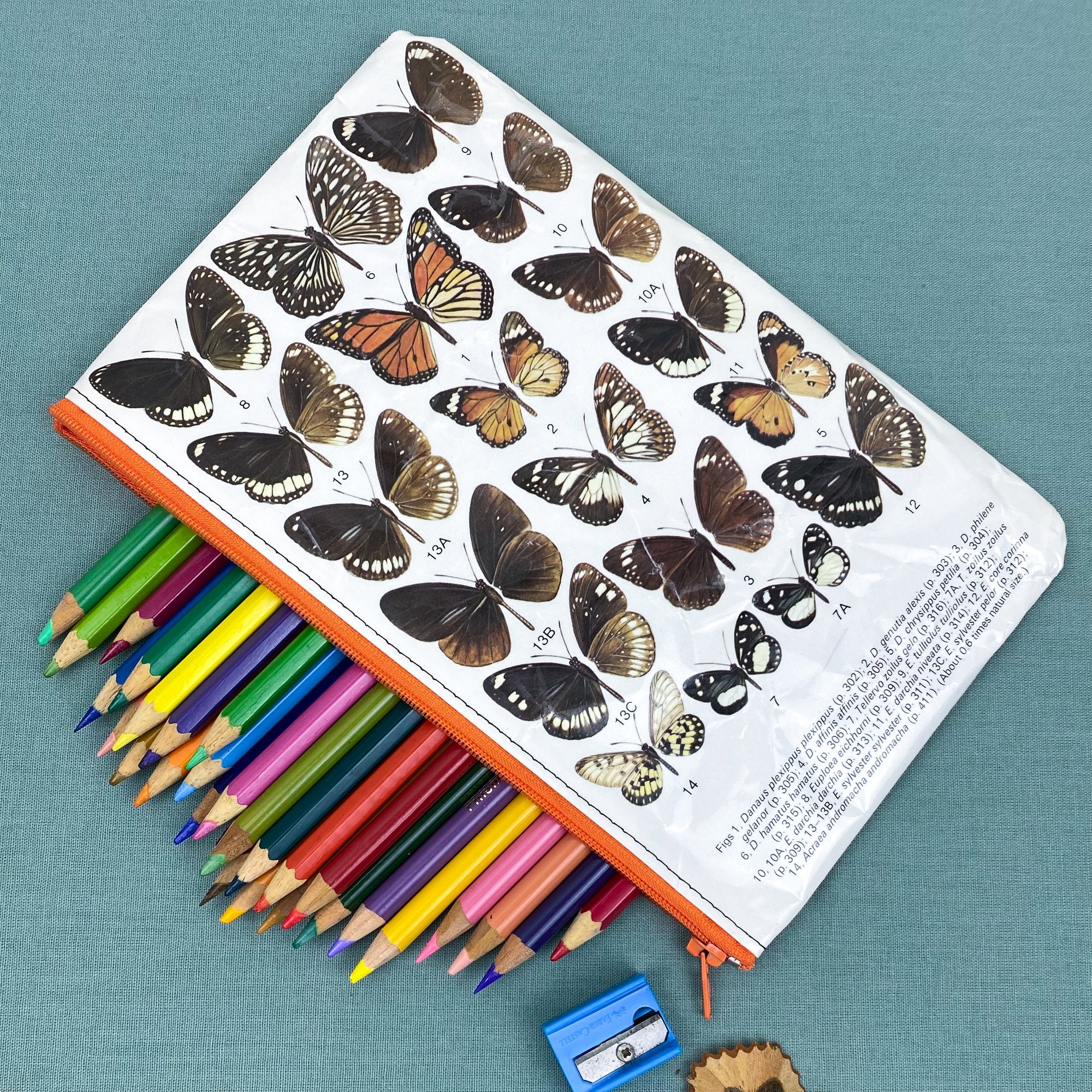 These are a versatile zipper pouch made from repurposed book pages. Use them as a pencil case, wallet, cosmetic bag, or for storing all the little bits and bobs that get lost in your bag.