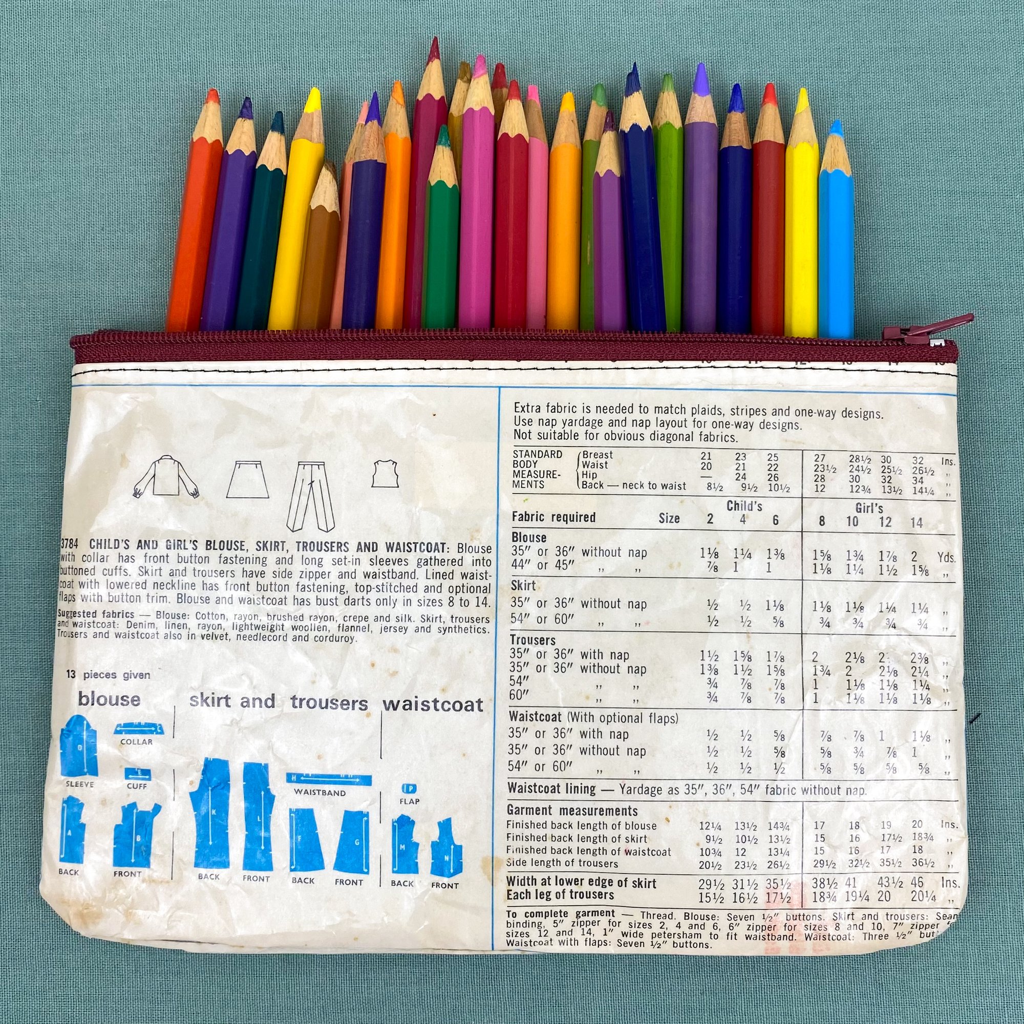 Sewing Pattern Pencil Case, 70’s Girl’s Skirt and Pants