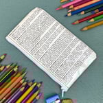 These are a versatile zipper pouch made from repurposed book pages. Use them as a pencil case, wallet, cosmetic bag, or for storing all the little bits and bobs that get lost in your bag.