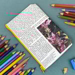 Both sides of the pages are covered in clear plastic for protection and durability. They can withstand the odd splash of water and can be wiped clean with a damp cloth, but they are not fully waterproof (where there’s stitching). You may notice the pages have a few crinkles, these occur during the making process when the finished pencil case is turned right side out, but I feel the crinkles add character! The pencil case is unlined so you can read the pages on the inside as well!