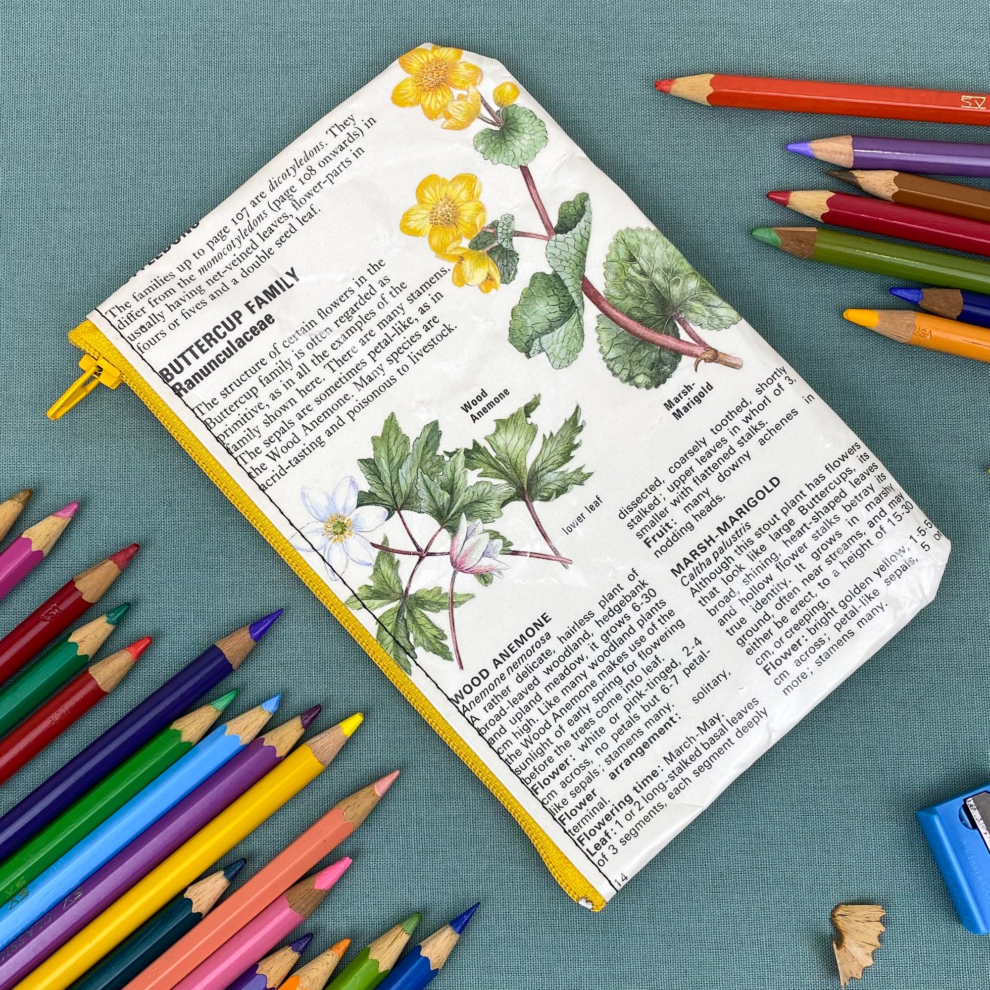 Buttercup and Bumble bee, Wild Flowers Guide Book Page Pencil Case