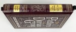 Details: dark plum leatherbound book cover with white and gold details. The inside bag has been sewn with sturdy black canvas fabric. The design includes a large front pocket, a 120cm black vegan leather strap (cross body length) and magnetic closure. The strap is removable, so you can use it as a clutch as well!