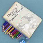 Both sides of the pages are covered in clear plastic for protection and durability. They can withstand the odd splash of water and can be wiped clean with a damp cloth, but they are not fully waterproof (where there’s stitching). You may notice the pages have a few crinkles, these occur during the making process when the finished pencil case is turned right side out, but I feel the crinkles add character! The pencil case is unlined so you can read the pages on the inside as well!