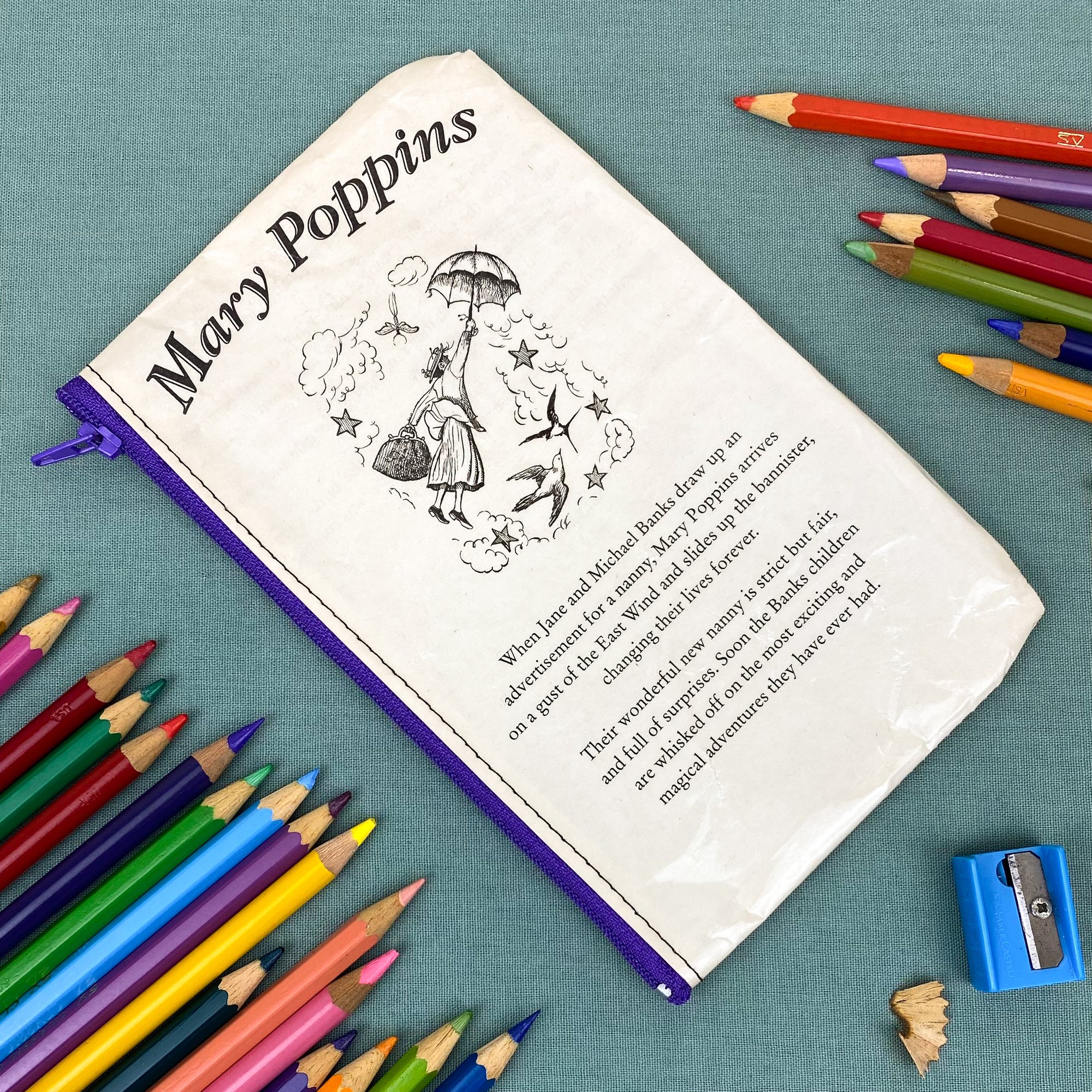 Both sides of the pages are covered in clear plastic for protection and durability. They can withstand the odd splash of water and can be wiped clean with a damp cloth, but they are not fully waterproof (where there’s stitching). You may notice the pages have a few crinkles, these occur during the making process when the finished pencil case is turned right side out, but I feel the crinkles add character! The pencil case is unlined so you can read the pages on the inside as well!