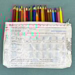 These are a versatile zipper pouch made from repurposed sewing patterns. Use them as a pencil case, wallet, cosmetic bag, or for storing all the little bits and bobs that get lost in your bag.