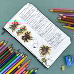 Both sides of the pages are covered in clear plastic for protection and durability. They can withstand the odd splash of water and can be wiped clean with a damp cloth, but they are not fully waterproof (where there’s stitching). You may notice the pages have a few crinkles, these occur during the making process when the finished pencil case is turned right side out, but I feel the crinkles add character! The pencil case is unlined so you can read the pages on the inside as well!
